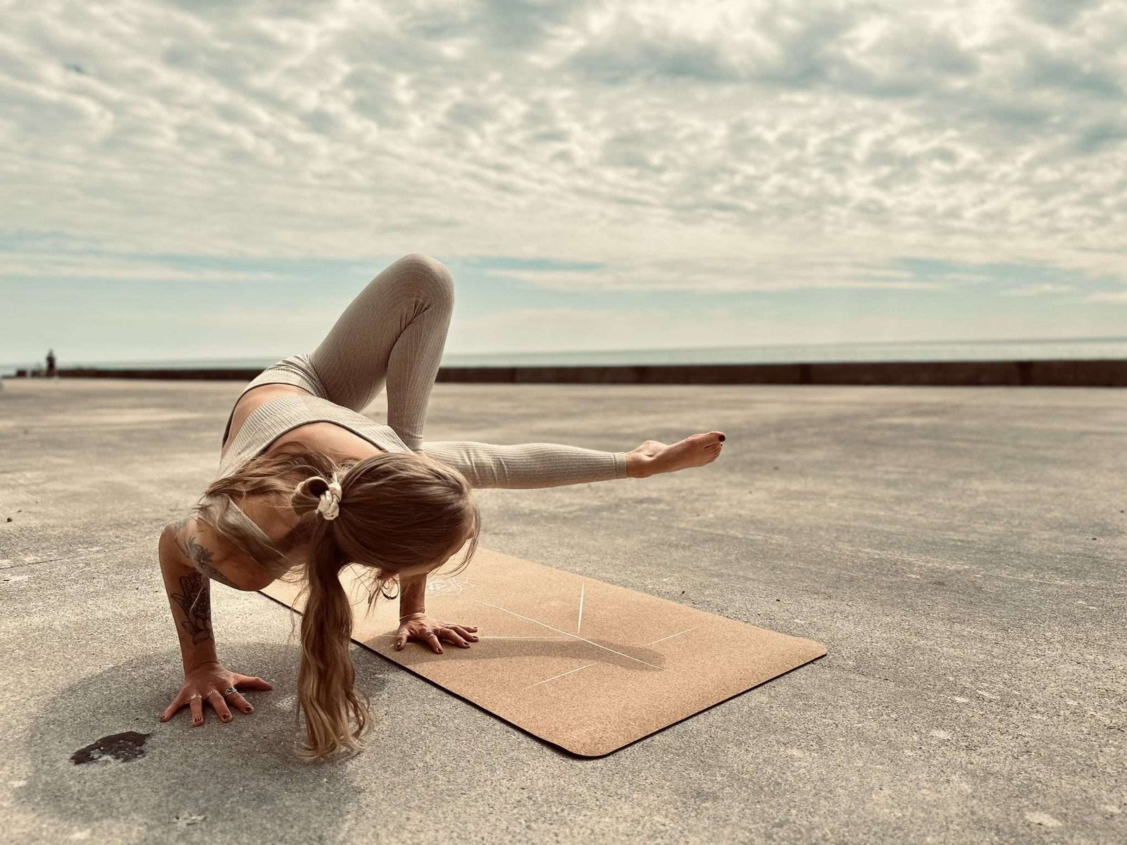 Our signature cork surfaces and natural rubber bases deliver exceptional grip, stability, and durability — even in sweaty flows. - Effortless elegance & bold design